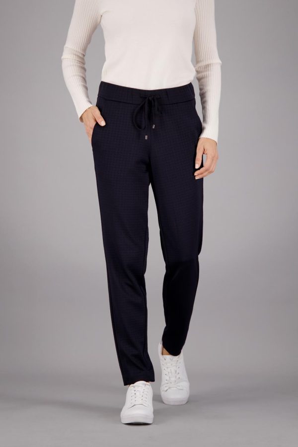 Modern Fit, casual jogg-style met koordje in de band en steekzakken. Binnenbeenlengte 74 cm, voetwijdte 28 cm. ton-sur-ton hanepoot jacquard in jersey