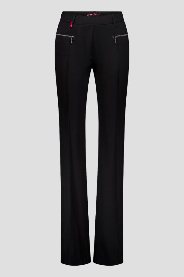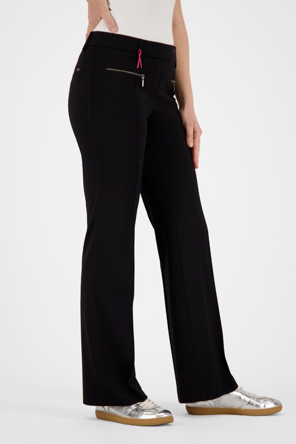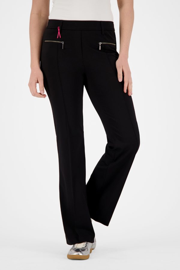 De ZARIA2-602131 uit de lente/zomercollectie is een slim fit bootcut broek van comfortabele jersey in een pull-on stijl. De biezen en ritszakken (binnenbeenlengte 82 cm | voetwijdte 52 cm) geven hem een moderne, elegante touch – perfect voor stijlbewuste, comfortabele looks.