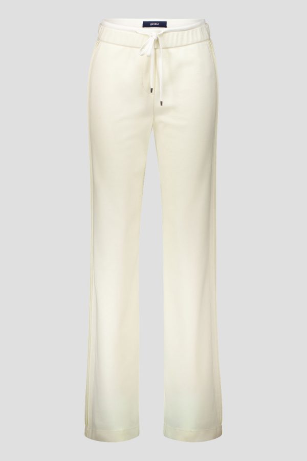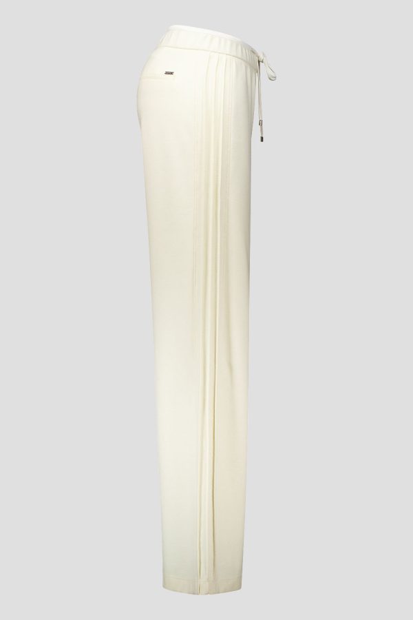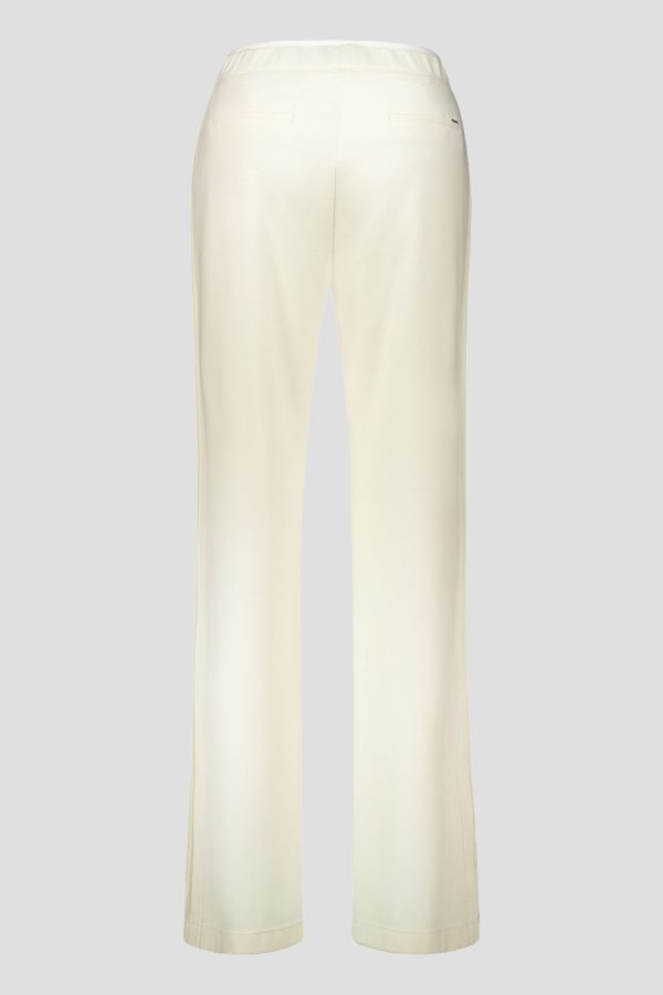 De FERGIE8-P-602501 combineert een vrouwelijke pasvorm met een modieuze wijde pijp voor een elegant, vloeiend silhouet. Een dubbele tailleband met strikband zorgt voor een individueel verstelbare pasvorm en geeft een decoratief accent, terwijl zij-inzetstukken met fijne plooitjes het ontwerp op verfijnde wijze benadrukken. Met een lengte van 82 cm en een voetbreedte van 56 cm biedt het een moderne wijdte.