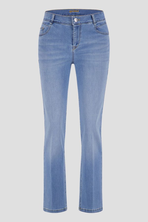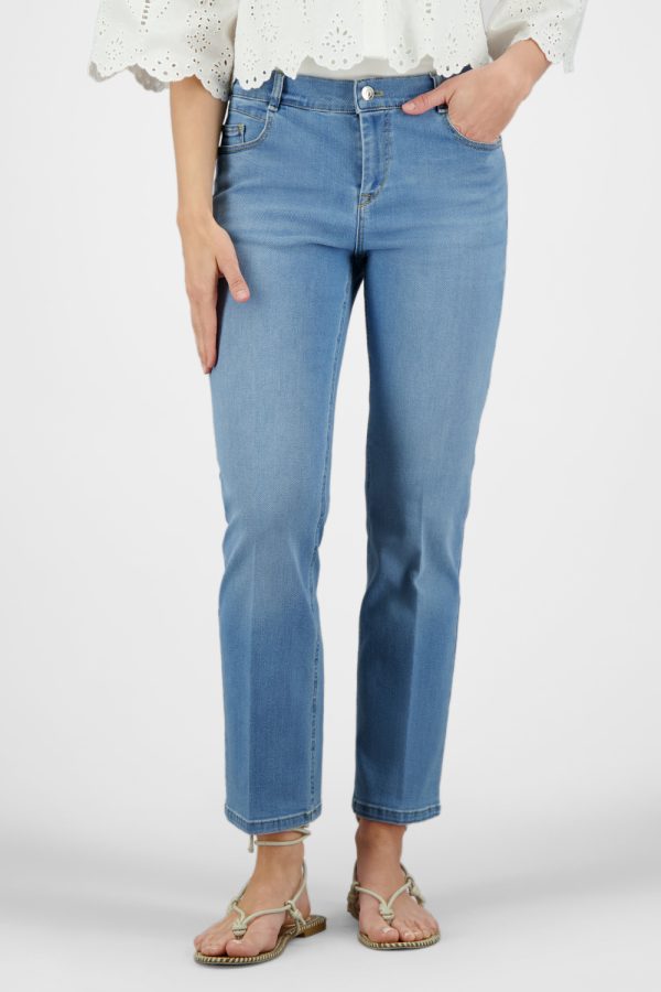 De ZURI123-670721 uit de lente/zomercollectie is een slim fit 5-pocketjeans van hoogwaardig denim met een cropped bootcut. binnenbeenlengte 68 cm | voetwijdte 44 cm zorgen voor een modern silhouet en een hoog draagcomfort – ideaal voor stijlvolle, veelzijdige looks.